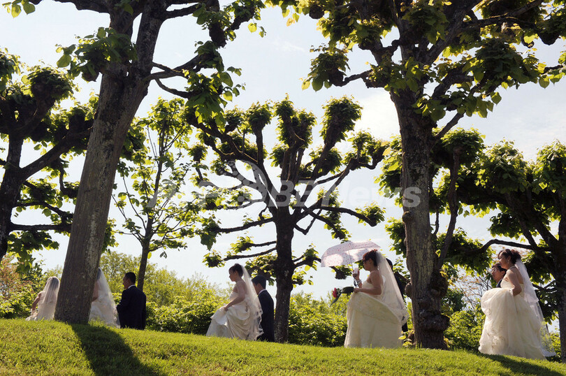 ニュース ライフ 中国の新婚カップル、フランスで集団結婚式 2009年5月8日 22:52 発信地:トゥール/フランス [ ヨーロッパ フランス ] このニュースをシェア ‹ › ❮ 2/8 ❯ 仏中部トゥール(Tours)近郊のビランドリー(Vilandry)城で、庭園を散策する中国・天津(Tianjin)からの新婚カップルたち。カップルらは、トゥール市が主催するパッケージツアー、第5回「ロマンチックウエディング」の参加者31組で、すでに中国で結婚を済ませている。2007年に始まった同イベントには、これまで計171組の中国人カップルが参加している(2009年5月7日撮影)。(c)AFP/ALAIN JOCARD 画像作成中 ! 【5月8日 AFP】仏中部トゥール(Tours)で7日、中国・天津(Tianjin)からの新婚カップル集団が、市庁舎前で祝杯を挙げた。新婚カップルらは、トゥール市が主催するパッケージツアー、第5回「ロマンチックウエディング」の参加者31組で、すでに中国で結婚を済ませている。2007年に始まった同イベントには、これまで計171組の中国人カップルが参加している。(c)AFP ライフ 一覧へ> メディア・報道関係・法人の方向け 写真・動画 購入のお問合せ>