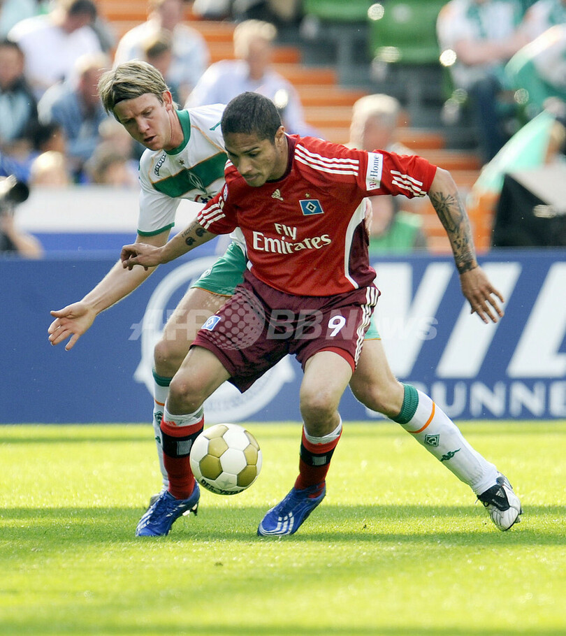 スポーツ サッカー ブレーメンが快勝 ハンブルガーは痛恨の敗戦 2009年5月11日 7:47 発信地:ブレーメン/ドイツ [ ヨーロッパ ドイツ ] このニュースをシェア ‹ › ❮ 6/6 ❯ 08-09ドイツ・ブンデスリーガ1部第31節、ヴェルダー・ブレーメン(%%Werder Bremen%%)対ハンブルガーSV(%%Hamburger SV%%)。試合はブレーメンが2-0で快勝し、首位VfLボルフスブルク(%%VfL Wolfsburg%%)を追走するハンブルガーは勝ち点差を詰められず、痛い敗戦となった。写真はブレーメンのペーテル・ニーメイアー(%%Peter Niemeyer%%)のマークを背に受けながらもボールをキープするハンブルガーのパオロ・ゲレーロ(%%Paolo Guerrero%%)。(2009年5月10日撮影)(c)AFP/DDP/DAVID HECKER 画像作成中 ! 【5月11日 AFP】08-09ドイツ・ブンデスリーガ1部第31節、ヴェルダー・ブレーメン(Werder Bremen)対ハンブルガーSV(Hamburger SV)。試合はブレーメンが2-0で快勝し、首位VfLボルフスブルク(VfL Wolfsburg)を追走するハンブルガーは勝ち点差を詰められず、痛い敗戦となった。(c)AFP サッカー 一覧へ> メディア・報道関係・法人の方向け 写真・動画 購入のお問合せ>