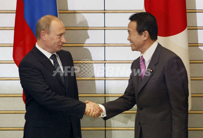 【5月12日 AFP】(一部更新)麻生太郎(Taro Aso)首相は12日、都内・首相官邸でロシアのウラジーミル・プーチン(Vladimir Putin)首相と会談した。