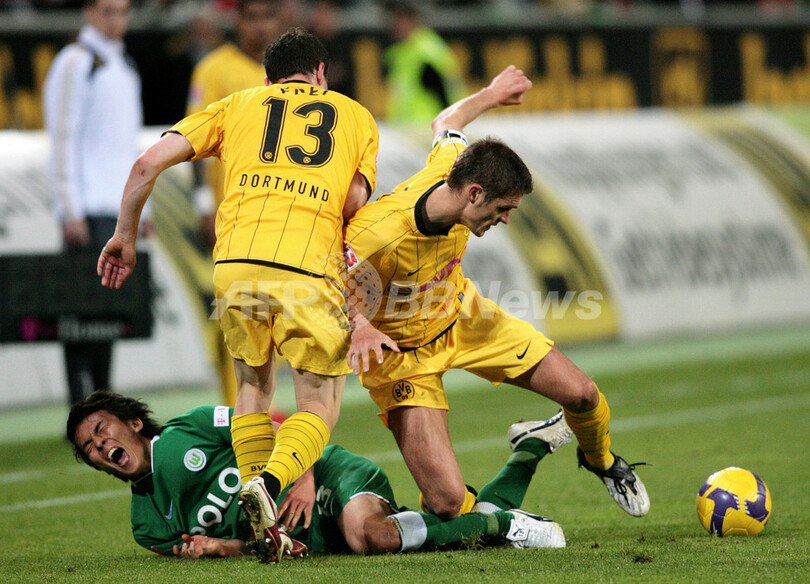 【5月13日 AFP】08-09ドイツ・ブンデスリーガ1部第32節、VfLボルフスブルク(VfL Wolfsburg)対ボルシア・ドルトムント(Borussia Dortmund)。試合はボルフスブルクが3-0で快勝し、首位を守った。