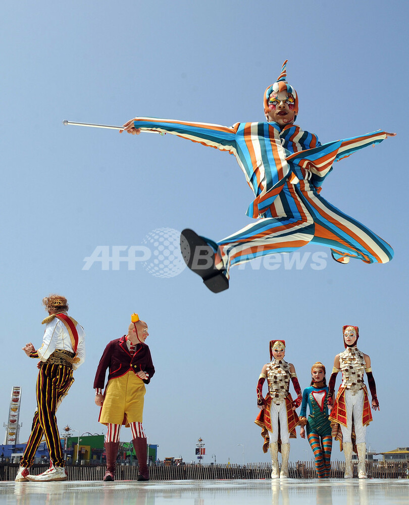 Kooza)」を披露した。「クーザ」は10月からサンタモニカ埠頭の100周年祭とシルク・ドゥ・ソレイユの創設25周年記念を兼ねてサンタモニカで上演される。(c)AFP