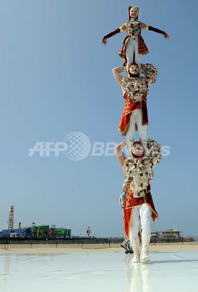 Kooza)」を披露した。「クーザ」は10月からサンタモニカ埠頭の100周年祭とシルク・ドゥ・ソレイユの創設25周年記念を兼ねてサンタモニカで上演される。(c)AFP