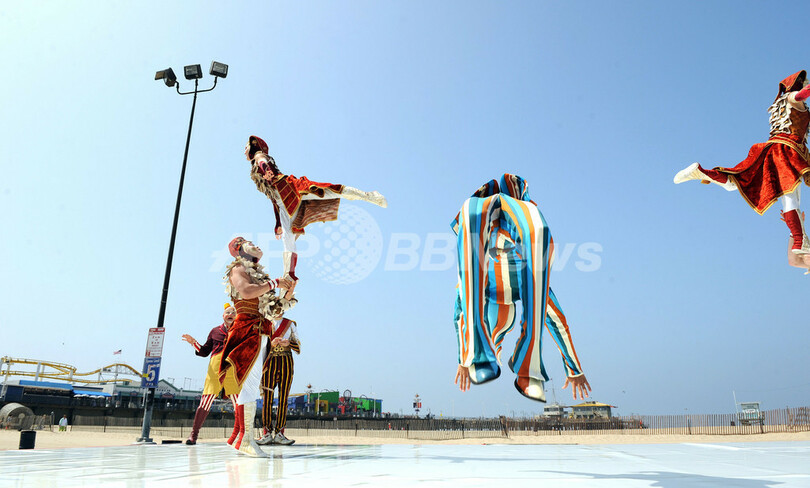 Kooza)」を披露した。「クーザ」は10月からサンタモニカ埠頭の100周年祭とシルク・ドゥ・ソレイユの創設25周年記念を兼ねてサンタモニカで上演される。(c)AFP