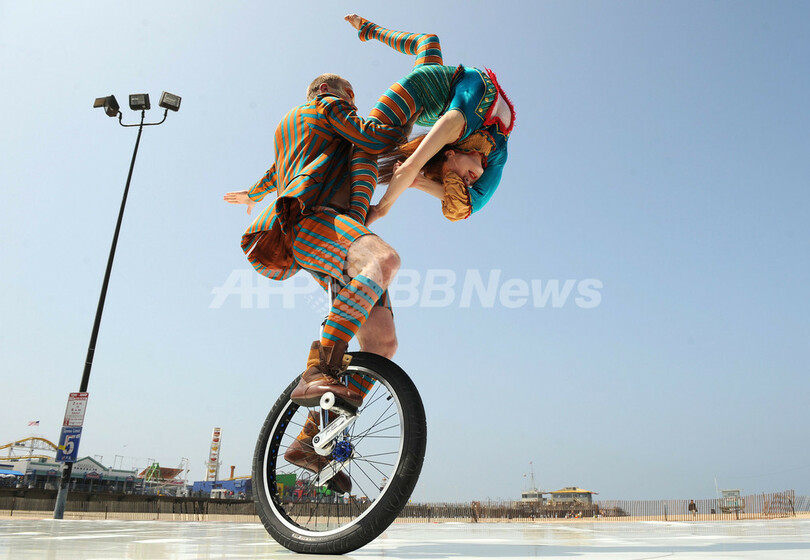 Kooza)」を披露した。「クーザ」は10月からサンタモニカ埠頭の100周年祭とシルク・ドゥ・ソレイユの創設25周年記念を兼ねてサンタモニカで上演される。(c)AFP