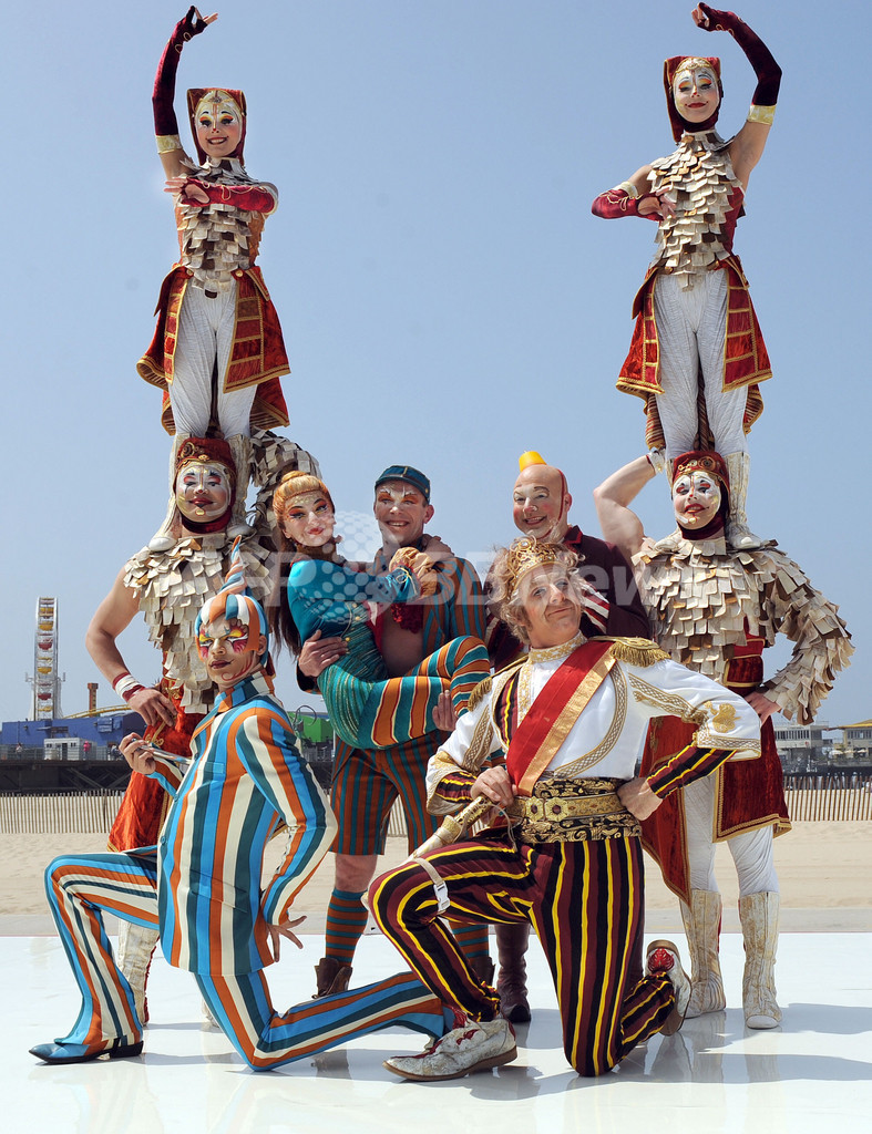 Kooza)」を披露した。「クーザ」は10月からサンタモニカ埠頭の100周年祭とシルク・ドゥ・ソレイユの創設25周年記念を兼ねてサンタモニカで上演される。(c)AFP