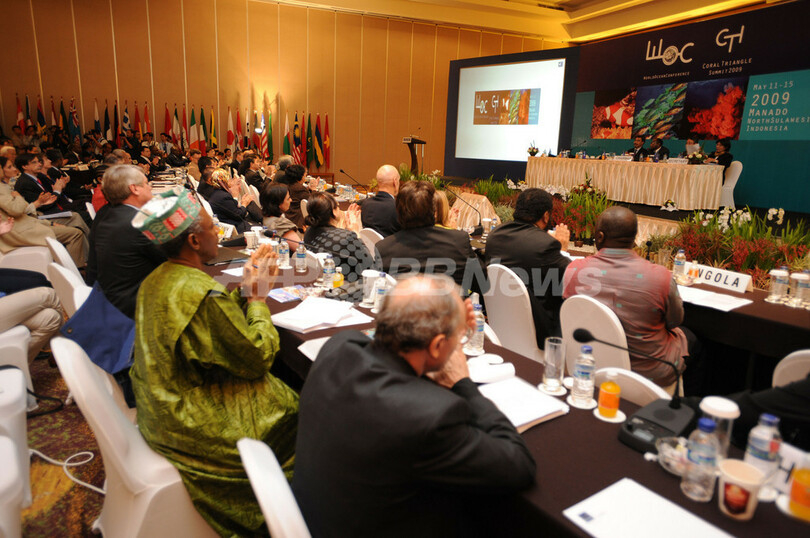 WWFの報告書は、インドネシアのマナド(Manado)で開かれている世界海洋会議(World Ocean Conference)で発表された。世界海洋会議は、気候変動と海洋との関係について協議する初の世界規模の会合で、世界70か国の閣僚や高官が参加している。(c)AFP/Aubrey Belford