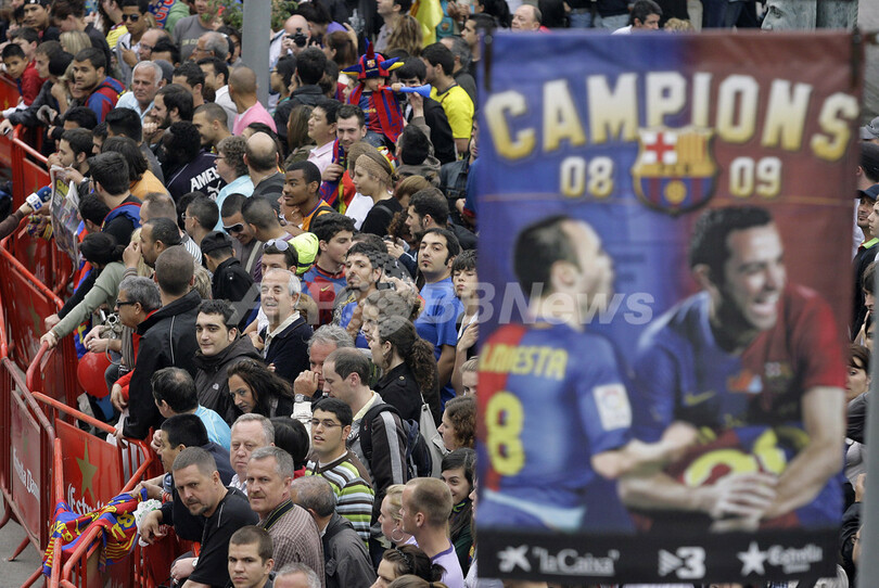 スポーツ サッカー 国王杯優勝のFCバルセロナが凱旋 2009年5月15日 8:36 発信地:バルセロナ/スペイン [ ヨーロッパ スペイン ] このニュースをシェア ‹ › ❮ 8/9 ❯ 13日に行われたサッカースペイン国王杯(%%Copa del Rey 2008-09%%)決勝でアスレティック・ビルバオ(%%Athletic Bilbao%%)を4-1で下し、11シーズンぶり25度目の優勝を果たしたFCバルセロナ(%%FC Barcelona%%)が14日、本拠地カンプ・ノウ・スタジアム(Camp Nou stadium)に凱旋した。写真はスタジアムで選手たちの乗ったバスを待つFCバルセロナのファン。(2009年5月14日撮影)(c)AFP/JOSEP LAGO 画像作成中 ! 【5月15日 AFP】13日に行われたサッカースペイン国王杯(Copa del Rey 2008-09)決勝でアスレティック・ビルバオ(Athletic Bilbao)を4-1で下し、11シーズンぶり25度目の優勝を果たしたFCバルセロナ(FC Barcelona)が14日、本拠地カンプ・ノウ・スタジアム(Camp Nou stadium)に凱旋した。(c)AFP サッカー 一覧へ> メディア・報道関係・法人の方向け 写真・動画 購入のお問合せ>