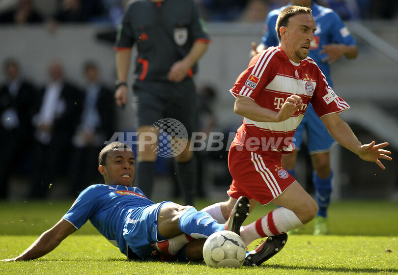 スポーツ サッカー バイエルン ホッフェンハイムと引き分ける 2009年5月17日 7:47 発信地:ホッフェンハイム/ドイツ [ ヨーロッパ ドイツ ] このニュースをシェア ‹ › ❮ 1/6 ❯ 08-09ドイツ・ブンデスリーガ1部第33節、1899ホッフェンハイム(%%1899 Hoffenheim%%)対バイエルン・ミュンヘン(%%Bayern Munich%%)。試合は2-2の引き分けに終わり、バイエルンは優勝の可能性は残しているものの、最終節を残して首位VfLボルフスブルク(%%VfL Wolfsburg%%)との勝ち点差は2に広がった。写真はホッフェンハイムのマーヴィン・コンパー(%%Marvin Compper%%)のスライディングタックルを受けるバイエルンのフランク・リベリ(%%Franck Ribery%%)。(2009年5月16日撮影)(c)AFP/DDP/TORSTEN SILZ 画像作成中 ! 【5月17日 AFP】08-09ドイツ・ブンデスリーガ1部第33節、1899ホッフェンハイム(1899 Hoffenheim)対バイエルン・ミュンヘン(Bayern Munich)。試合は2-2の引き分けに終わり、バイエルンは優勝の可能性は残しているものの、最終節を残して首位VfLボルフスブルク(VfL Wolfsburg)との勝ち点差は2に広がった。(c)AFP サッカー 一覧へ> メディア・報道関係・法人の方向け 写真・動画 購入のお問合せ>