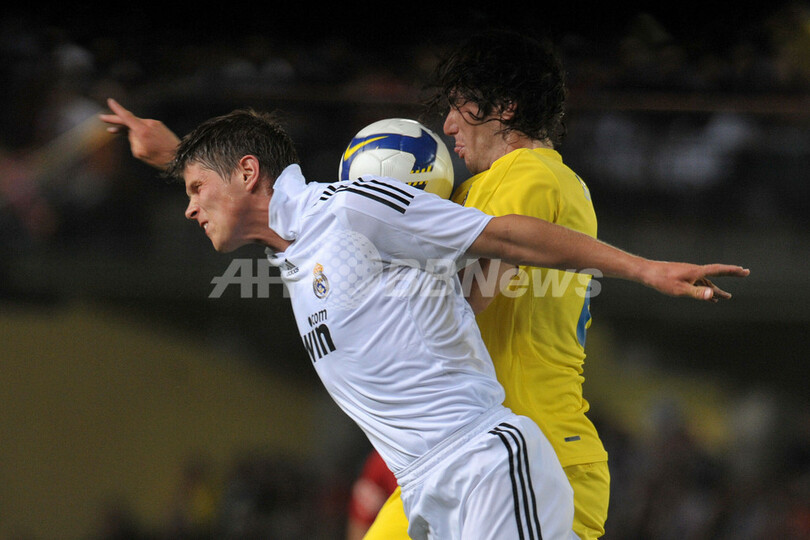 試合終了間際のホアン・カプデビラ(Joan Capdevila)の得点でレアル・マドリードに勝利したビジャレアルは、勝ち点59で消化試合数の少ないバレンシア(Valencia CF)と並び、来シーズンの欧州チャンピオンズリーグ出場権獲得への望みをつないでいる。(c)AFP
