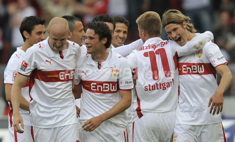 スポーツ サッカー シュツットガルト コットブスに快勝し優勝への望みをつなぐ 2009年5月17日 8:45 発信地:シュツットガルト/ドイツ [ ヨーロッパ ドイツ ] このニュースをシェア ‹ › ❮ 6/6 ❯ 08-09ドイツ・ブンデスリーガ1部第33節、VfBシュツットガルト(%%VfB Stuttgart%%)対エネルギー・コットブス(%%Energie Cottbus%%)。試合はシュツットガルトが2-0で快勝し、首位VfLボルフスブルク(%%VfL Wolfsburg%%)との勝ち点差2をキープして最終節に優勝への望みをつないだ。写真は前半19分にトーマス・ヒツルスペルガー(%%Thomas Hitzlsperger%%)が挙げた先制点に歓喜するシュツットガルトの選手たち。(2009年5月16日撮影)(c)AFP/DDP/OLIVER LANG 画像作成中 ! 【5月17日 AFP】08-09ドイツ・ブンデスリーガ1部第33節、VfBシュツットガルト(VfB Stuttgart)対エネルギー・コットブス(Energie Cottbus)。試合はシュツットガルトが2-0で快勝し、首位VfLボルフスブルク(VfL Wolfsburg)との勝ち点差2をキープして最終節に優勝への望みをつないだ。(c)AFP サッカー 一覧へ> メディア・報道関係・法人の方向け 写真・動画 購入のお問合せ>