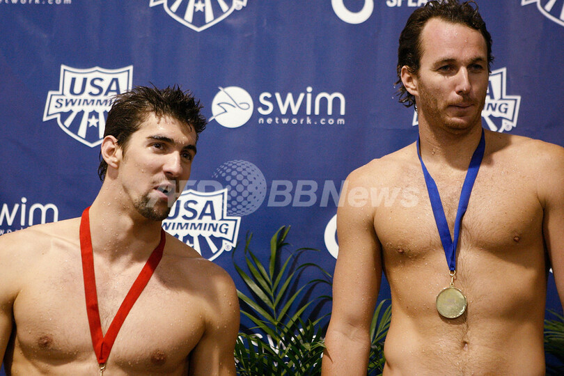 フェルプスは同日に行なわれた50メートル自由形にも出場し、23秒24を記録して予選を通過していたが、目的としていた新しいウィンドミル泳法のテストを終えたこともあり、決勝レースを棄権している。(c)AFP/Jim Slater