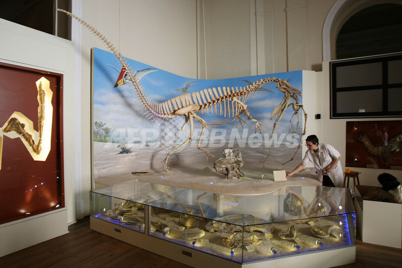 ニュース 環境・科学 約1億1000万年前の恐竜に思いをはせる 2009年5月17日 19:05 発信地:リオデジャネイロ/ブラジル [ 中南米 ブラジル ] このニュースをシェア ‹ › ❮ 6/12 ❯ 1991年にブラジル北東部セアラ(Ceara)州のアラリペ(Araripe)周辺で発掘された肉食恐竜、学名アンガトゥラマ・リマイ(Angaturama limai) の化石が15日から、同国の首都リオデジャネイロ(Rio de Janeiro)にある国立歴史博物館で公開されている。写真は準備される展示の一部。この肉食竜は約1億1000万年前に生息し、高さ3メートル、体長7メートルにも成長したと推測される(2009年5月14日撮影)。(c)AFP/VANDERLEI ALMEIDA 画像作成中 ! 【5月17日 AFP】(一部訂正)1991年にブラジル北東部セアラ(Ceara)州のアラリペ(Araripe)周辺で発掘された肉食恐竜、学名アンガトゥラマ・リマイ(Angaturama limai) の化石が15日から、同国の首都リオデジャネイロ(Rio de Janeiro)にある国立歴史博物館で公開されている。(c)AFP 環境・科学 一覧へ> メディア・報道関係・法人の方向け 写真・動画 購入のお問合せ>
