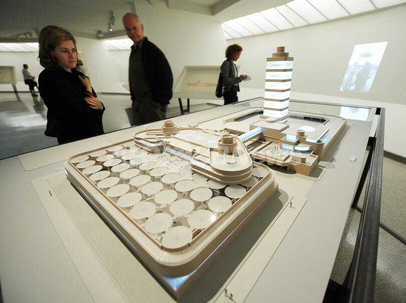 米ニューヨークのグッゲンハイム美術館(Guggenheim Museum)が開館50年記念展覧会として、同館の設計も手がけた建築家フランク・ロイド(Frank Lloyd)の回顧展「Frank Lloyd Wright: From Within Outward」を開催している。写真は1936-50年にかけてウィスコンシン(Wisconsin)州ラシーン(Racine)に建設されたジョンソンワックス本社ビル(S.C. Johnson Wax Administration Building)の模型(2009年5月14日撮影)。(c)AFP/Stan Honda