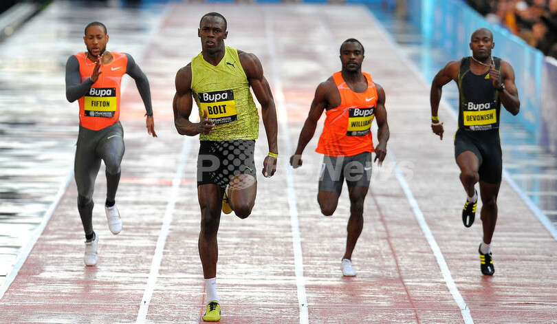 【5月18日 AFP】北京五輪陸上短距離3冠、ジャマイカのウサイン・ボルト(Usain Bolt)が17日、英マンチェスター(Manchester)市街地で行われたストリートレース、グレート・シティ・ゲームズ(Great City Games)男子150メートルに出場し、歴代最高の14秒35を記録した。