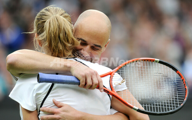 エキシビションマッチは男女混合ダブルスでヘンマン/クライシュテルス組が7-6で勝利、男子シングルスはアガシ氏が6-4でヘンマン氏を下し、女子シングルスはクライシュテルスが6-4でグラフ氏に勝利している。(c)AFP
