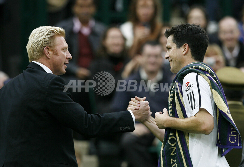 【5月18日 AFP】(記事更新、一部訂正)ウィンブルドン選手権(The Championships Wimbledon)が行われるオールイングランド・ローンテニス・アンド・クローケー・クラブ(All England Lawn Tennis and Croquet Club)のセンターコートで17日、エキシビションマッチが行われた。