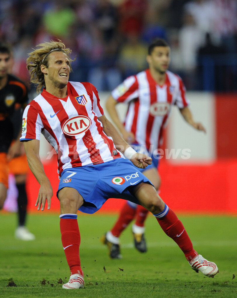 【5月18日 AFP】08-09スペイン1部リーグ・第36節、アトレティコ・マドリード(Atletico de Madrid)対バレンシア(Valencia CF)。試合はアトレティコ・マドリードが1-0で勝利した。アトレティコ・マドリードはこの勝利でバレンシアを抜いてリーグ4位に浮上し、シーズン残り2試合でバレンシアとビジャレアル(Villarreal FC)に勝ち点差2をつけ、2シーズン連続の欧州チャンピオンズリーグ(Champions League)出場に近づいている。(c)AFP