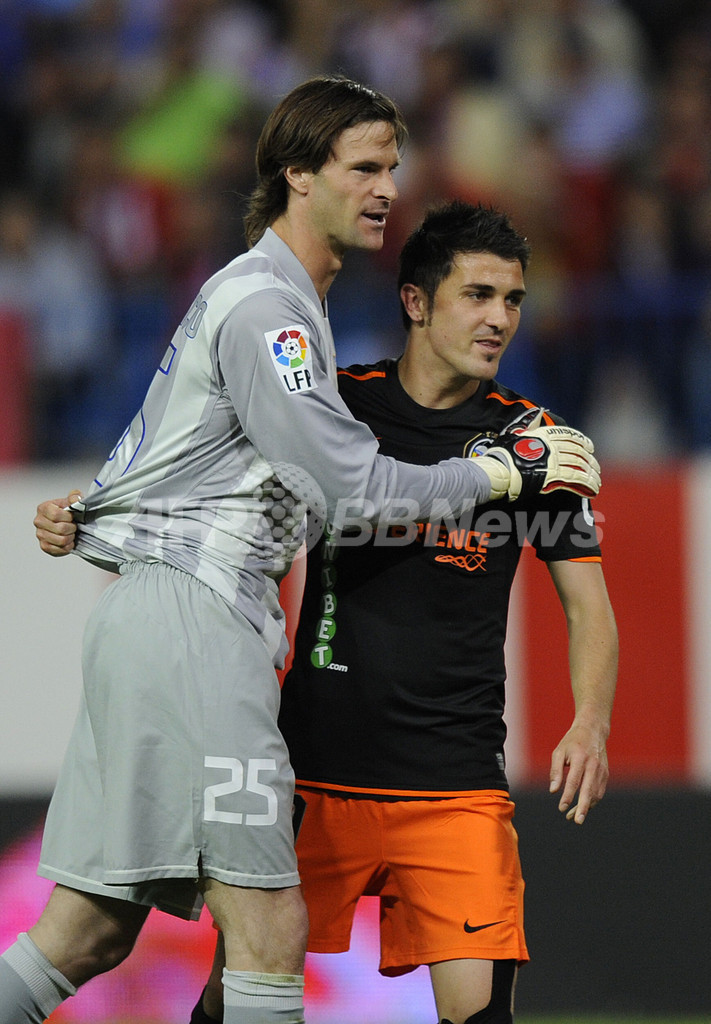 【5月18日 AFP】08-09スペイン1部リーグ・第36節、アトレティコ・マドリード(Atletico de Madrid)対バレンシア(Valencia CF)。試合はアトレティコ・マドリードが1-0で勝利した。アトレティコ・マドリードはこの勝利でバレンシアを抜いてリーグ4位に浮上し、シーズン残り2試合でバレンシアとビジャレアル(Villarreal FC)に勝ち点差2をつけ、2シーズン連続の欧州チャンピオンズリーグ(Champions League)出場に近づいている。(c)AFP