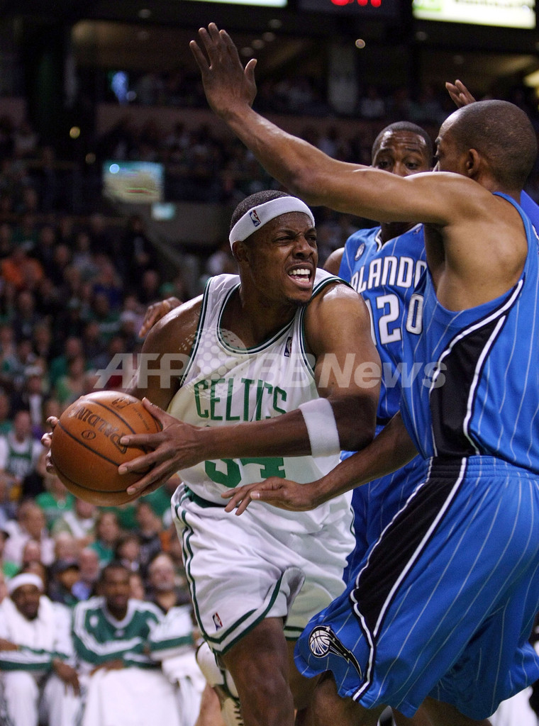 セルティックスは、レイ・アレン(Ray Allen)が23得点、ポール・ピアース(Paul Pierce)が16得点を記録しチームを牽引したが、結果的には右ひざの負傷によりプレーオフ欠場を余儀なくされたケビン・ガーネット(Kevin Garnett)の存在が大きく響いた。(c)AFP