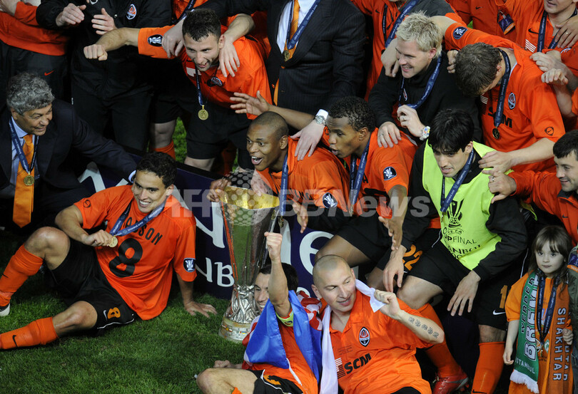 【5月21日 AFP】(一部訂正、記事更新、写真追加)サッカーUEFA杯2008-09(UEFA Cup 2008-09)決勝、シャフタール・ドネツク(Shakhtar Donetsk)対ヴェルダー・ブレーメン(Werder Bremen)。試合は延長戦の末、シャフタールが2-1で勝利し、大会初優勝を果たした。シャフタールは、ウクライナの旧ソ連から独立後、同国勢として初めて欧州カップ戦でタイトルを獲得したチームとなった。