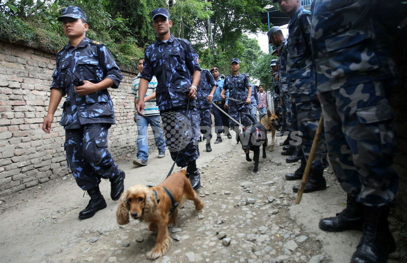 爆発現場で、ヒンズー教徒による王政の復興をもくろむ過激派組織「NDA(National Defence Army)」のパンフレットが見つかったが、警察は実行犯と断定するのは時期尚早だとした。(c)AFP/Subel Bhandari