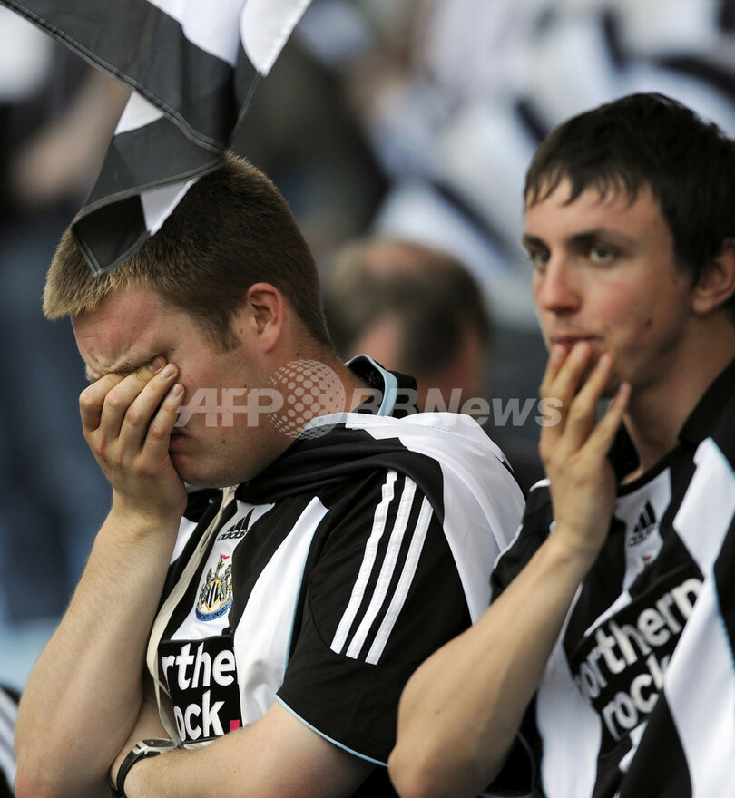 【5月25日 AFP】08-09イングランド・プレミアリーグ、アストン・ビラ(Aston Villa)対ニューカッスル(Newcastle United)。試合はニューカッスルが0-1で敗れ、イングランド・チャンピオンシップ・リーグ(2部)への降格が決まった。