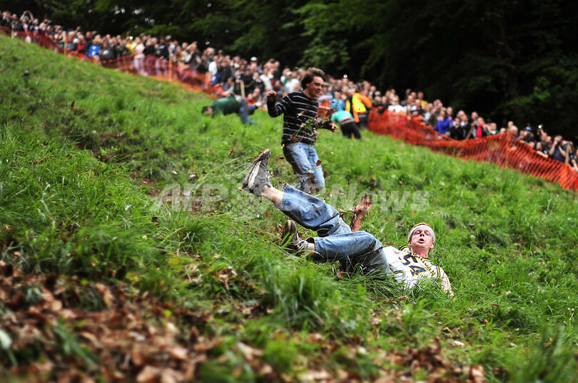 ニュース ライフ こぼれ話 英国で毎年恒例の「チーズ転がし大会」 2009年5月26日 12:26 発信地:グロスター/英国 [ ヨーロッパ 英国 ] このニュースをシェア ‹ › ❮ 6/10 ❯ 英国西部グロスター(Gloucester)のクーパーズヒル(Coopers Hill)で25日、1800年代から毎年行われている恒例の「チーズ転がし大会」が開催された。怖いもの知らずの参加者たちは、巨大な「ダブル・グロスター・チーズ」を追いかけ、急こう配の丘を駆け下りた。写真は、大会の様子(2009年5月25日撮影)。(c)AFP/Ben Stansall 画像作成中 ! 【5月26日 AFP】英国西部グロスター(Gloucester)のクーパーズヒル(Coopers Hill)で25日、1800年代から毎年行われている恒例の「チーズ転がし大会」が開催された。怖いもの知らずの参加者たちは、巨大な「ダブル・グロスター・チーズ」を追いかけ、急こう配の丘を駆け下りた。(c)AFP ライフ 一覧へ> メディア・報道関係・法人の方向け 写真・動画 購入のお問合せ>