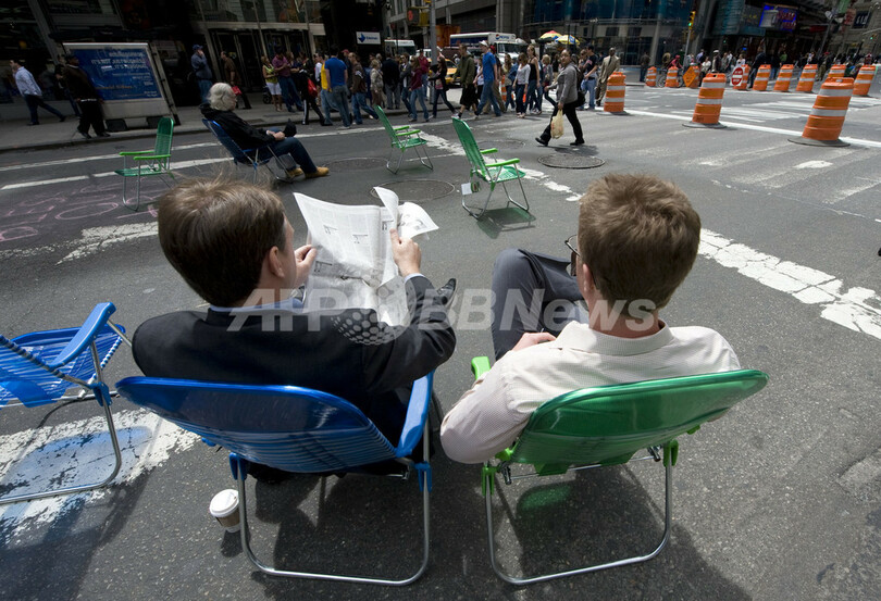 ニュース ライフ タイムズスクエアが歩行者天国に 2009年5月27日 14:46 発信地:ニューヨーク/米国 [ 北米 米国 ] このニュースをシェア ‹ › ❮ 21/21 ❯ ニューヨーク(New York)のタイムズスクエア(Times Square)周辺が、24日から歩行者天国になった。これは、交通渋滞や接触事故を減らすことを目的に、マイケル・ブルームバーグ(Michael Bloomberg)市長が推し進めた政策で、42丁目から47丁目までのブロードウェー(Broadway)と、35丁目から33丁目までの道路が、車両進入禁止となっている。写真は、歩行者天国となったタイムズスクエアに置かれたローンチェアでくつろぐ男性たち(2009年5月26日撮影)。(c)AFP/DON EMMERT 画像作成中 ! 【5月27日 AFP】ニューヨーク(New York)のタイムズスクエア(Times Square)周辺が、24日から歩行者天国になった。これは、交通渋滞や接触事故を減らすことを目的に、マイケル・ブルームバーグ(Michael Bloomberg)市長が推し進めた政策で、42丁目から47丁目までのブロードウェー(Broadway)と、35丁目から33丁目までの道路が、車両進入禁止となっている。(c)AFP ライフ 一覧へ> メディア・報道関係・法人の方向け 写真・動画 購入のお問合せ>