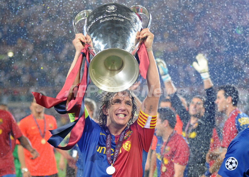 国内リーグ、国内カップ戦(スペイン国王杯(Copa del Rey 2008-09)に続きチャンピオンズリーグを制したバルセロナは、スペイン国内のクラブとして初の3冠を達成し、1999年にマンチェスター・ユナイテッドが成し遂げた偉業を再現した。(c)AFP/Barnaby Chesterman