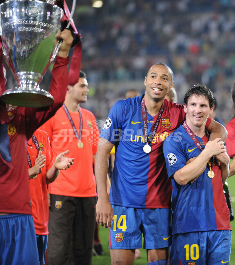 国内リーグ、国内カップ戦(スペイン国王杯(Copa del Rey 2008-09)に続きチャンピオンズリーグを制したバルセロナは、スペイン国内のクラブとして初の3冠を達成し、1999年にマンチェスター・ユナイテッドが成し遂げた偉業を再現した。(c)AFP/Barnaby Chesterman