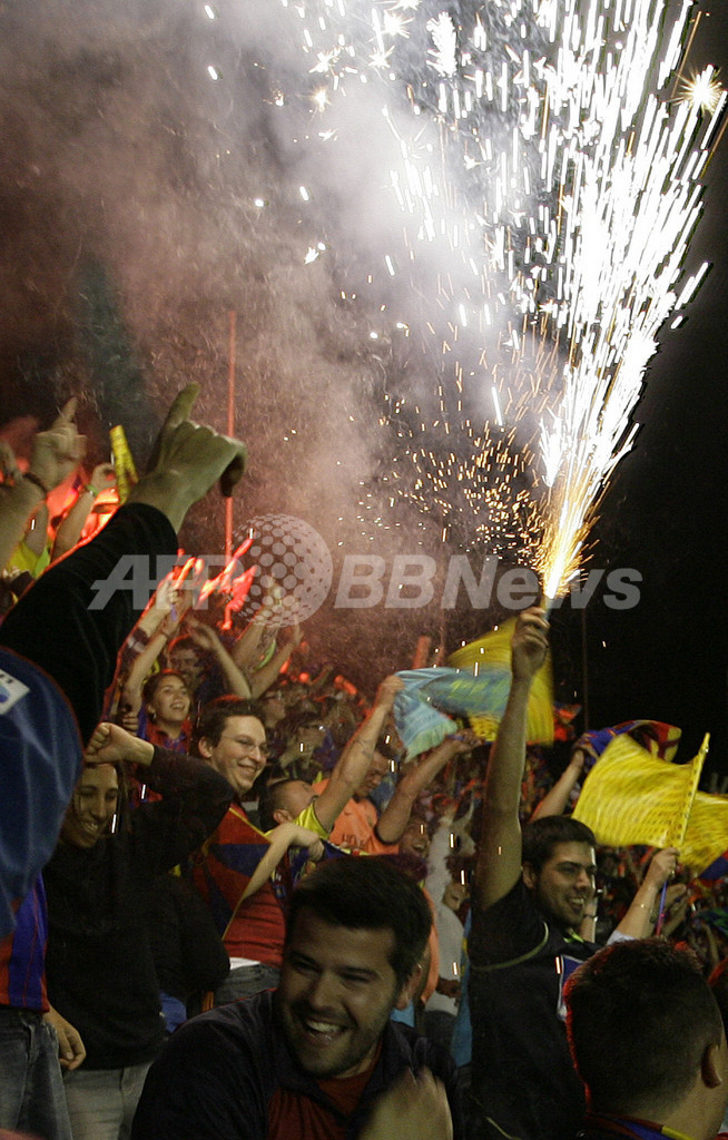 同日、伊ローマ(Rome)で行われたチャンピオンズリーグ決勝で、FCバルセロナが英マンチェスター・ユナイテッド(Manchester United)に2-0で勝利すると、バルセロナ市街には約10万人が繰り出した。