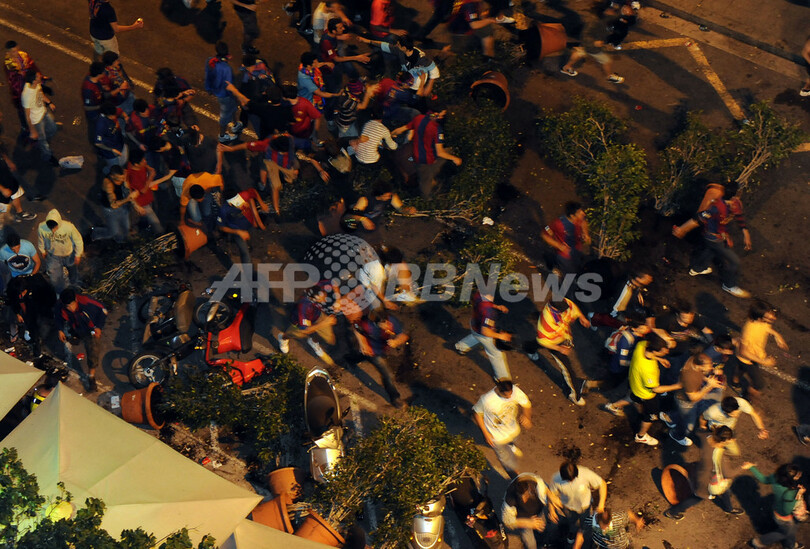 同日、伊ローマ(Rome)で行われたチャンピオンズリーグ決勝で、FCバルセロナが英マンチェスター・ユナイテッド(Manchester United)に2-0で勝利すると、バルセロナ市街には約10万人が繰り出した。