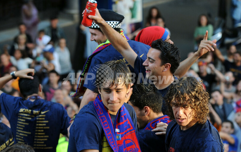 【5月29日 AFP】サッカー欧州チャンピオンズリーグ2008-09(UEFA Champions League 2008-09)を制したFCバルセロナ(FC Barcelona)が28日に優勝パレードを行い、駆けつけた数万人のファンが熱狂した。