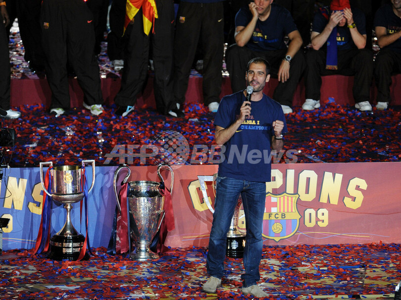 27日の決勝でマンチェスター・ユナイテッド(Manchester United)を2-0で下し、国内リーグ、国内カップ(スペイン国王杯(Copa del Rey 2008-09)に続き3冠を達成したリオネル・メッシ(Lionel Messi)、サミュエル・エトー(Samuel Eto’o)、ティエリ・アンリ(Thierry Henry)ら選手が、決勝の地ローマ(Rome)から凱旋(がいせん)した。