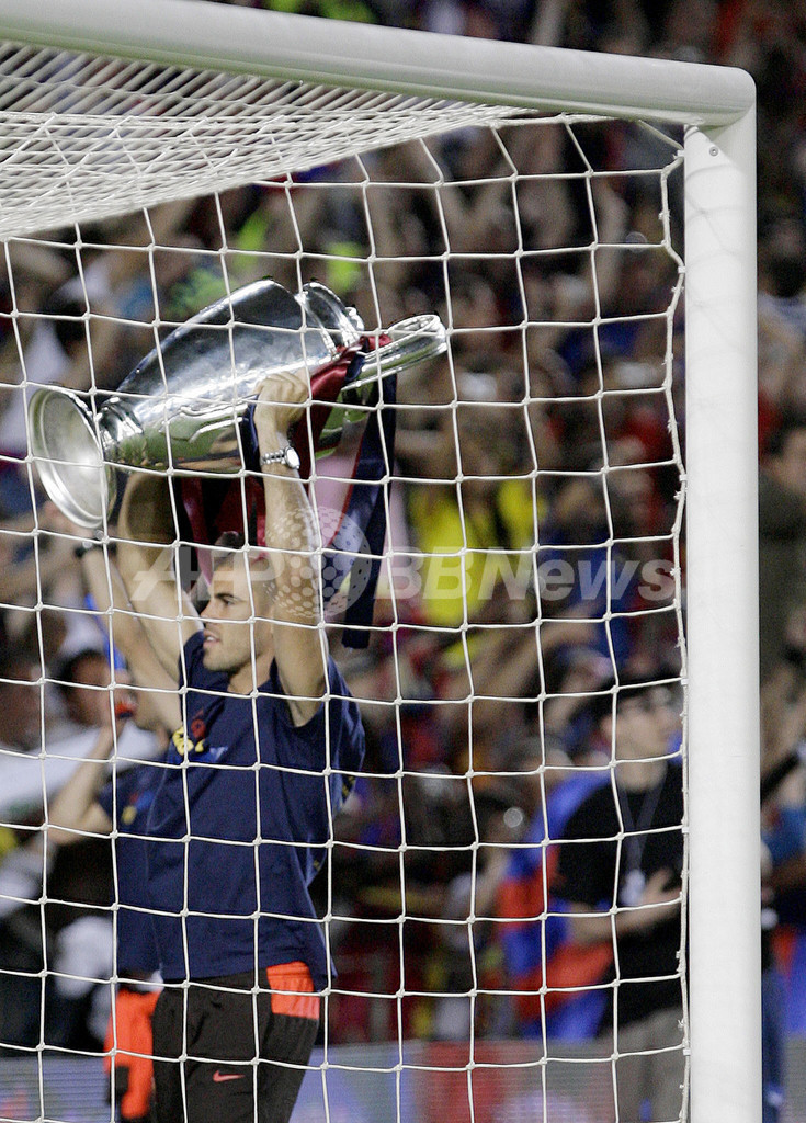 27日の決勝でマンチェスター・ユナイテッド(Manchester United)を2-0で下し、国内リーグ、国内カップ(スペイン国王杯(Copa del Rey 2008-09)に続き3冠を達成したリオネル・メッシ(Lionel Messi)、サミュエル・エトー(Samuel Eto’o)、ティエリ・アンリ(Thierry Henry)ら選手が、決勝の地ローマ(Rome)から凱旋(がいせん)した。