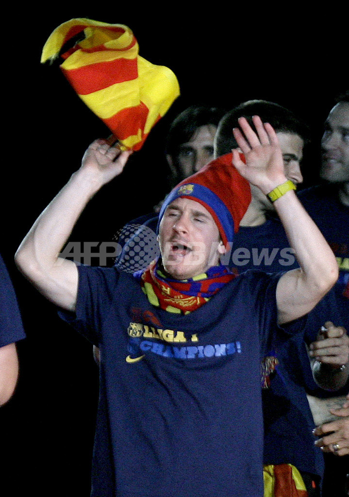 【5月29日 AFP】サッカー欧州チャンピオンズリーグ2008-09(UEFA Champions League 2008-09)を制したFCバルセロナ(FC Barcelona)が28日に優勝パレードを行い、駆けつけた数万人のファンが熱狂した。