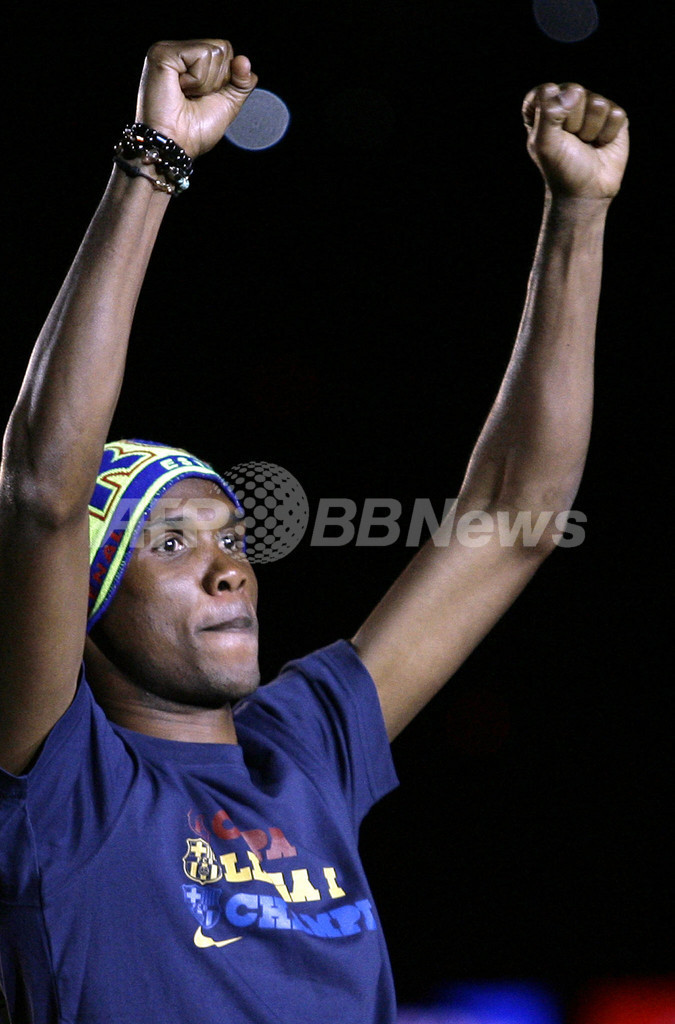 27日の決勝でマンチェスター・ユナイテッド(Manchester United)を2-0で下し、国内リーグ、国内カップ(スペイン国王杯(Copa del Rey 2008-09)に続き3冠を達成したリオネル・メッシ(Lionel Messi)、サミュエル・エトー(Samuel Eto’o)、ティエリ・アンリ(Thierry Henry)ら選手が、決勝の地ローマ(Rome)から凱旋(がいせん)した。