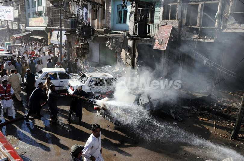 【5月29日 AFP】パキスタン北西部のペシャワル(Peshawar)と周辺都市で28日、相次いで4件の爆破事件が発生し、13人が死亡、100人以上が負傷した。前日27日にラホール(Lahore)で起きた自動車爆弾による攻撃について、イスラム原理主義組織タリバン(Taliban)系の武装組織「パキスタン・タリバン運動Tehreek-e-Taliban Pakistan、TTP)」が犯行声明を出したばかり。TTPはパキスタン政府が北部で展開するイスラム系武装勢力の掃討作戦に対し、さらなる報復攻撃を警告しており、懸念が強まっている。(c)AFP/Lehaz Ali