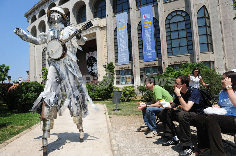 ニュース ライフ 路上パフォーマンスの祭典、欧州各国から劇団が集結 ルーマニア 2009年5月29日 19:06 発信地:ブカレスト/ルーマニア [ ヨーロッパ ルーマニア ] このニュースをシェア ‹ › ❮ 1/4 ❯ ルーマニアのブカレスト(Bucharest)で28日から4日間、欧州各国の劇団が参加する路上パフォーマンスのフェスティバル「B.Fit in The Street」が開催されている。写真は、国立劇場前でパフォーマンスを披露するベルギーのパフォーマンス集団「カンパーニュ・ド・フュナンブル(Compagnie du Funambule)」の団員(2009年5月28日撮影)。(c)AFP/DANIEL MIHAILESCU 画像作成中 ! 【5月29日 AFP】ルーマニアのブカレスト(Bucharest)で28日から4日間、欧州各国の劇団が参加する路上パフォーマンスのフェスティバル「B.Fit in The Street」が開催されている。(c)AFP ライフ 一覧へ> メディア・報道関係・法人の方向け 写真・動画 購入のお問合せ>
