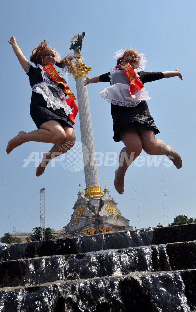 ニュース ライフ こぼれ話 卒業前に無礼講! 噴水でお祭り騒ぎの学生たち ウクライナ 2009年5月30日 19:10 発信地:キエフ/ウクライナ [ ロシア・CIS ウクライナ ] このニュースをシェア ‹ › ❮ 1/6 ❯ ウクライナの首都キエフ(Kiev)で29日、卒業生らが学校生活最後の日に、独立広場(Independence Square)の噴水で毎年恒例のお祭り騒ぎをした。ウクライナでは同日、学生ら約70万4000人が、学校生活最後の日を祝う行事「Last Ring」に参加する。写真は、噴水に入って飛び跳ねる学生ら(2009年5月29日撮影)。(c)AFP/SERGEI SUPINSKY 画像作成中 ! 【5月30日 AFP】ウクライナの首都キエフ(Kiev)で29日、卒業を目前に控えた学生らが学校生活最後の日に、独立広場(Independence Square)の噴水で毎年恒例のお祭り騒ぎをした。(c)AFP ライフ 一覧へ> メディア・報道関係・法人の方向け 写真・動画 購入のお問合せ>