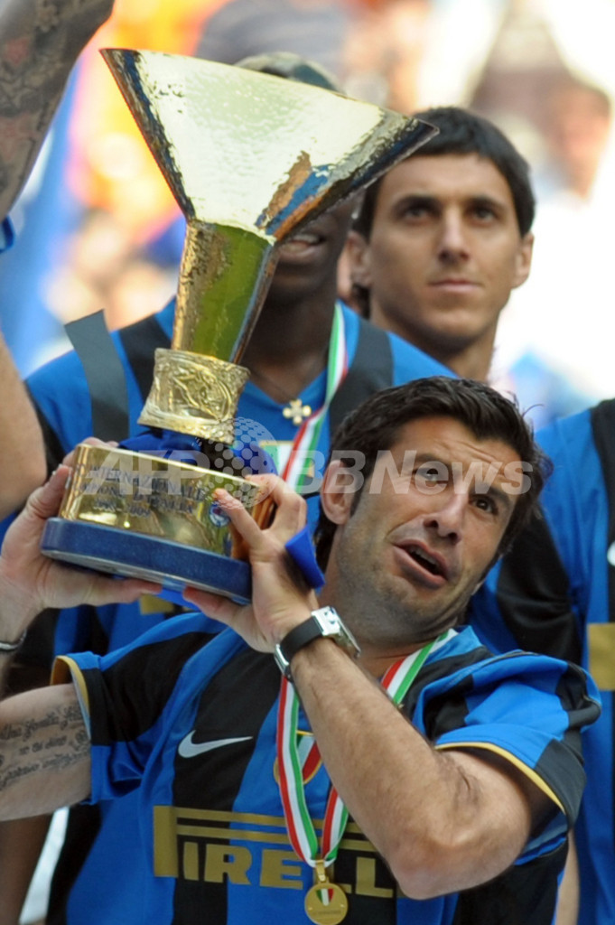 【6月1日 AFP】08-09イタリア・セリエA第38節、インテル(Inter Milan)対アタランタ(Atalanta)。試合はインテルが4-3で勝利し、ルイス・フィーゴ(Luis Figo)の現役最後の試合を白星で飾った。