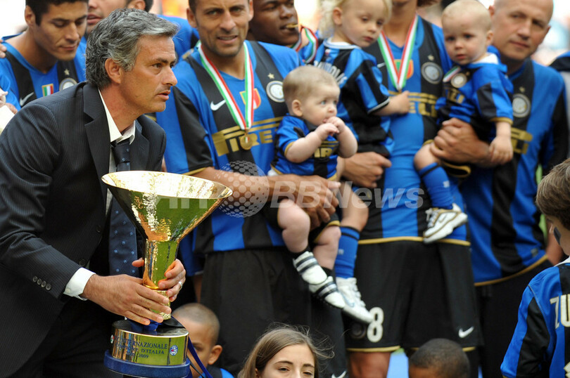 王者インテルは、一時は2-3でリードを許したが、逆転勝利を収めた。この試合で2得点を記録したズラタン・イブラヒモビッチ(Zlatan Ibrahimovic)が、ゴール数を25に伸ばし、リーグ得点王に輝いた。(c)AFP/Barnaby Chesterman