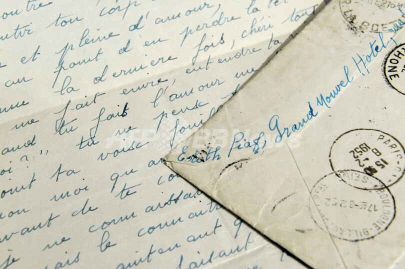ピアフとジェラルダンの恋は、ピアフが1952年にフランス人俳優ジャック・ピルス(Jacques Pills)と結婚したことで終わっている。写真は、29日に公開されたこれらの手紙(2009年5月29日撮影)。(c)AFP