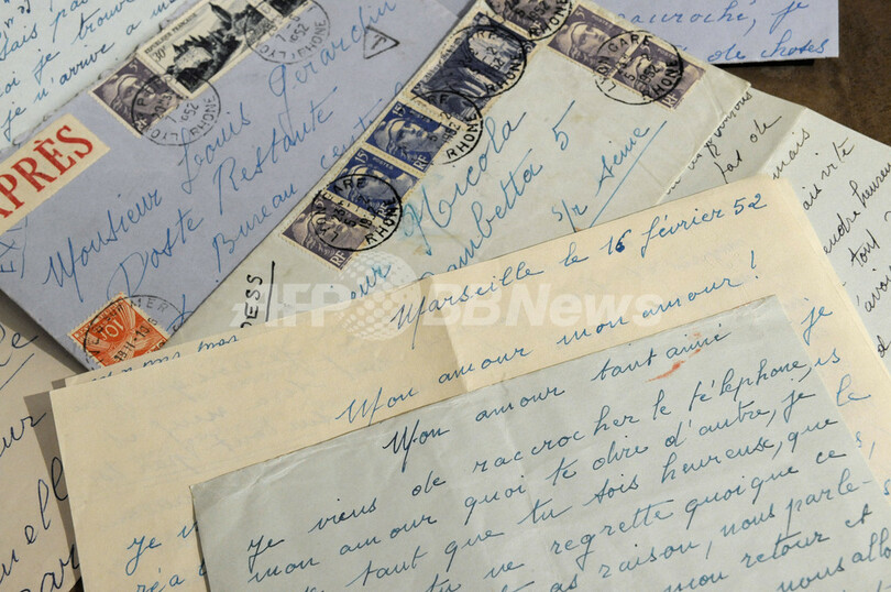 ピアフとジェラルダンの恋は、ピアフが1952年にフランス人俳優ジャック・ピルス(Jacques Pills)と結婚したことで終わっている。写真は、29日に公開されたこれらの手紙(2009年5月29日撮影)。(c)AFP