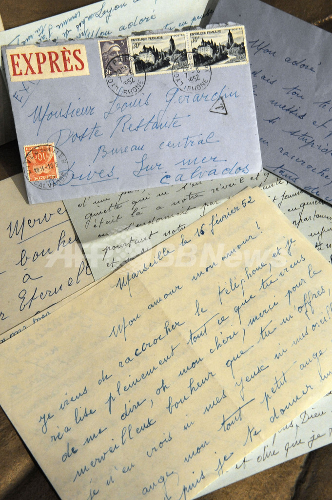 ピアフとジェラルダンの恋は、ピアフが1952年にフランス人俳優ジャック・ピルス(Jacques Pills)と結婚したことで終わっている。写真は、29日に公開されたこれらの手紙(2009年5月29日撮影)。(c)AFP