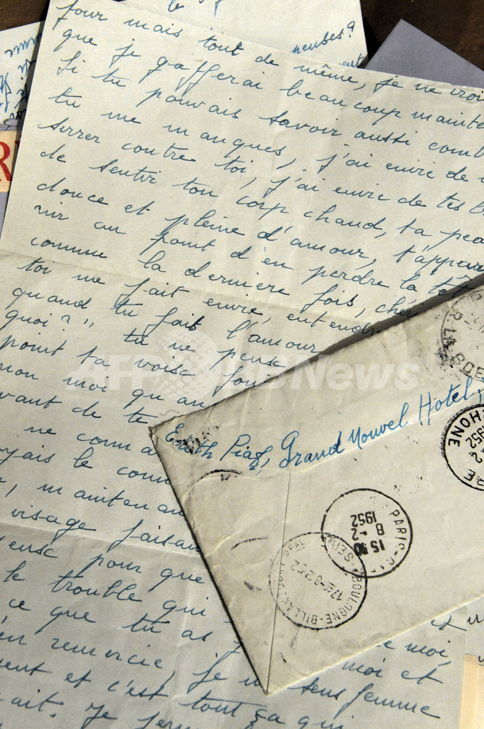 ピアフとジェラルダンの恋は、ピアフが1952年にフランス人俳優ジャック・ピルス(Jacques Pills)と結婚したことで終わっている。写真は、29日に公開されたこれらの手紙(2009年5月29日撮影)。(c)AFP
