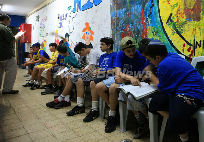イスラエル全土で2日、市民による防衛訓練が行われた。シリアやイランからのミサイル攻撃、パレスチナ自治区ガザ地区(Gaza Strip)やレバノンからのロケット弾攻撃、自爆攻撃から自然災害までを想定したもので、サイレンが各地で鳴り響き、同国史上最大規模の訓練となった。写真は、エルサレム(Jerusalem)の学校でシェルターに集まった子供たち(2009年6月2日撮影)。(c)AFP/GALI TIBBON