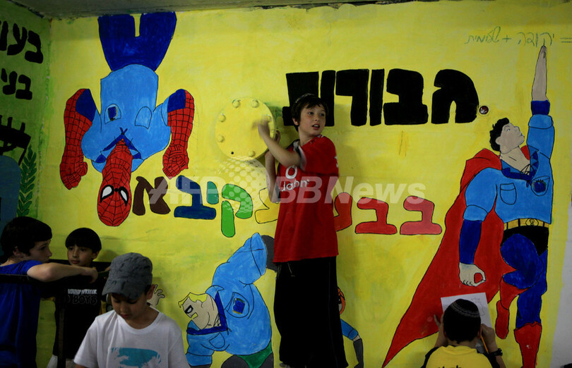 イスラエル全土で2日、市民による防衛訓練が行われた。シリアやイランからのミサイル攻撃、パレスチナ自治区ガザ地区(Gaza Strip)やレバノンからのロケット弾攻撃、自爆攻撃から自然災害までを想定したもので、サイレンが各地で鳴り響き、同国史上最大規模の訓練となった。写真は、エルサレム(Jerusalem)の学校でシェルターに集まった子供たち(2009年6月2日撮影)。(c)AFP/GALI TIBBON
