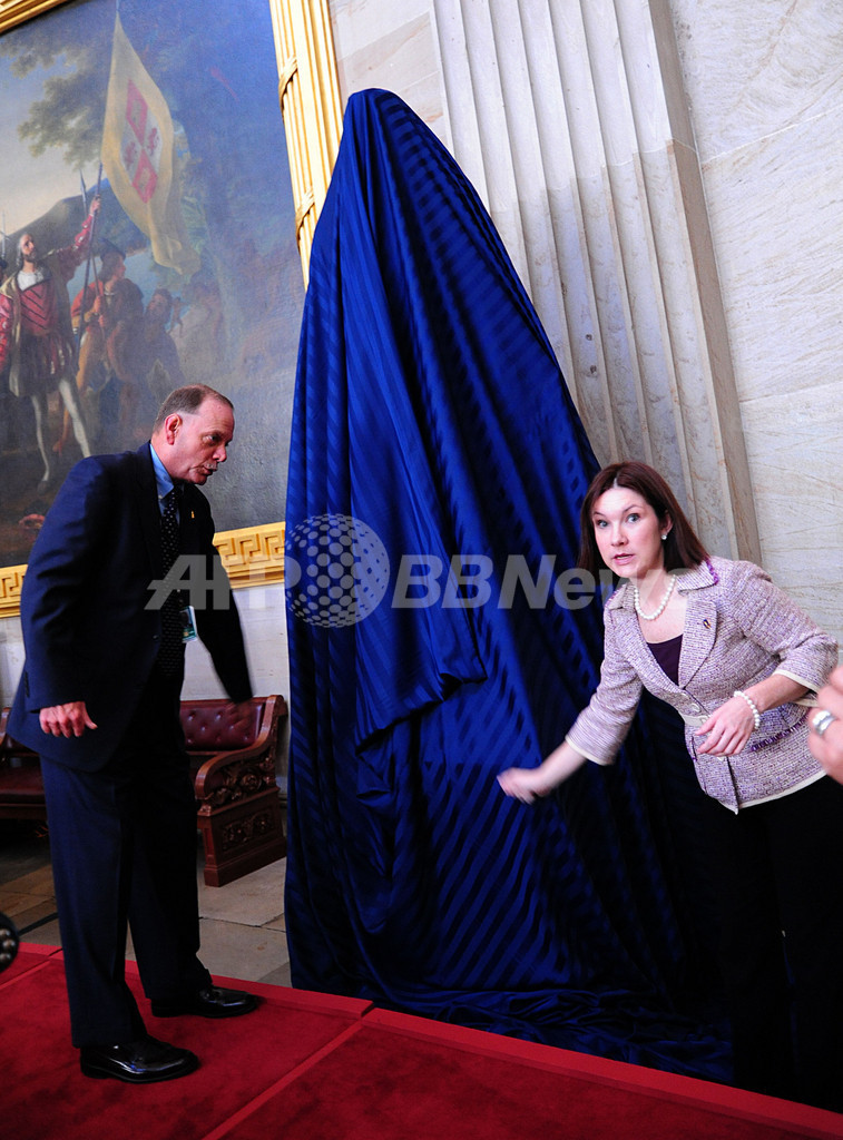 【6月4日 AFP】米ワシントンD.C.(Washington D.C.)の米連邦議会議事堂(Capitol Hill)に3日、故ロナルド・レーガン(Ronald Reagan)元米大統領の像がお目見えした。除幕式にはナンシー・レーガン(Nancy Reagan)夫人も出席した。(c)AFP