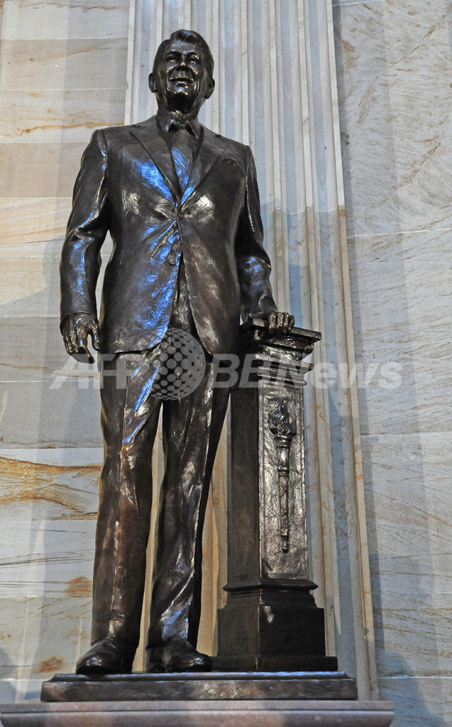 故レーガン元米大統領の像が完成、除幕式にはナンシー夫人も出席